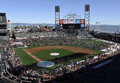 The park stretches out along the San Francisco Bay, a segment of which is named McCovey Cove in honor of former Giants player Willie McCovey. The Giants' new home features an inspiring nine-foot statue of America's greatest living ballplayer. At the public entrance you will be impressed by Willie Mays, Portuguese water dogs, an 80-foot Coca-Cola bottle with playground slides and a miniature AT&T Park behind left field that has become a famous playground for kids of all of ages. To view the 2019 Schedule, Click Here.